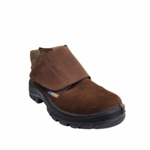 Calçado ocupacional tipo botina, fechamento em cadarço, confeccionado em couro nobuck na cor café curtido ao