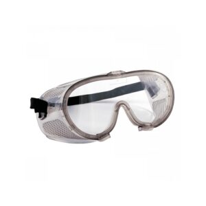 Óculos de segurança, constituídos de arco de material plástico preto com um pino central e duas fendas nas