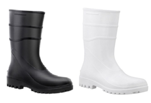 Calçado ocupacional de uso profissional tipo sapato, impermeável, confeccionado em material polimérico (EVA), palmilha interna removível, solado de borracha antiderrapante, resistente à absorção de energia na região do salto e ao óleo combustível.