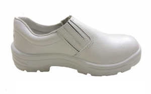 Calçado de segurança tipo bota para uso no combate a incêndio, confeccionado em borracha vulcanizada na cor preta com detalhes em amarelo, forro em tecido retardante à chamas, biqueira interna em aço, palmilha de aço, camada isolante elétrica separada do solado através de feltro isolante térmico, proteção de tíbia e sua borda superior, com duas alças.