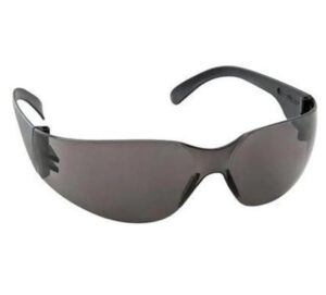Óculos de segurança, constituídos de arco de material plástico preto com um pino central e duas fendas nas